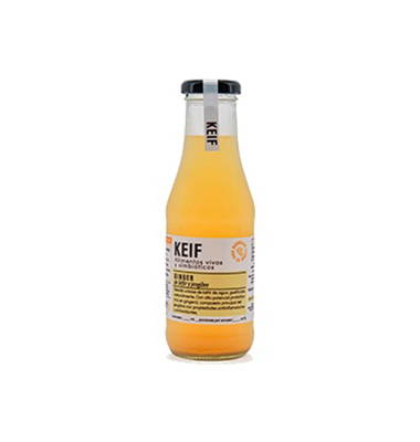 Ingredientes: Agua de kéfir, Jengibre orgánico fermentado, y azúcar morena orgánica.