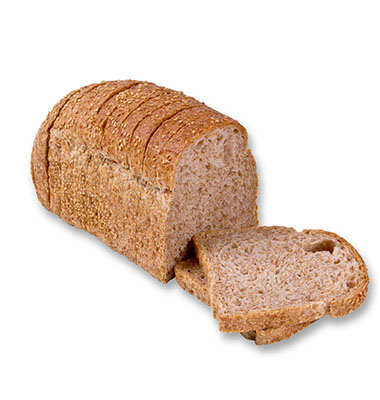 Pan vegano tajado helaborado con harina de trigo integral y ajonjoli, con semillas de ajonjoli.
